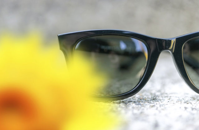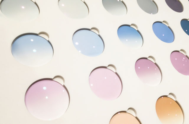 紫外線の量で色が変わる調光レンズは、室内では透明、屋外ではサングラスに早変わり。